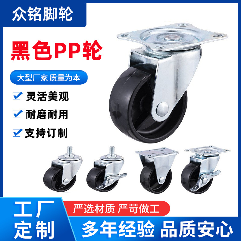 Pp roda rem roda kecil, kaster nilon pp hitam ringan penyimpanan batang sekrup roda