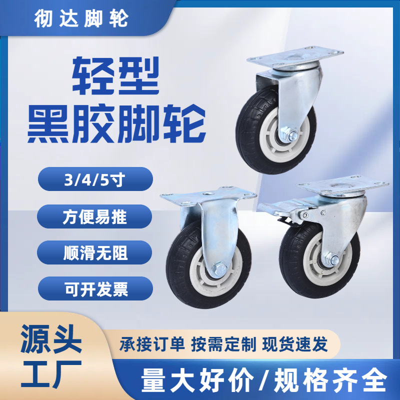 Produsen roda kastor karet hitam tugas berat industri 4/5/6/8 inci 10 inci roda troli roda karet hitam roda tugas berat