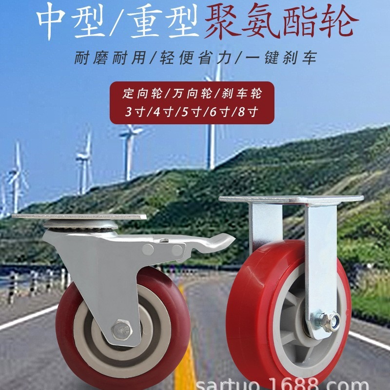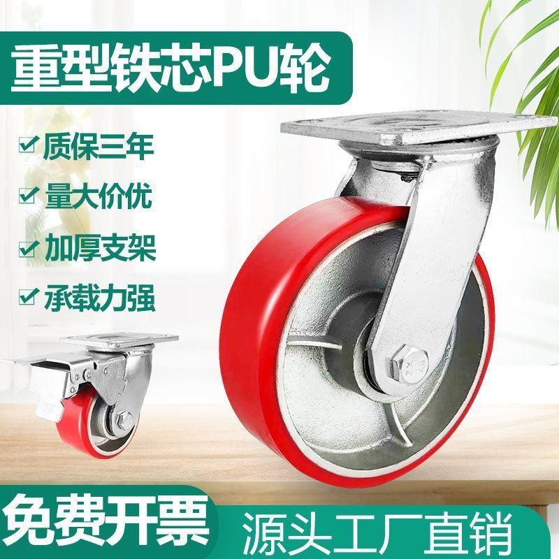Roda industri pekerjaan berat 4 \ 5 \ 6 \ 8 \ 10-inci inti besi PU roda dilapisi poliuretana trailer roda garpu ternak tanah