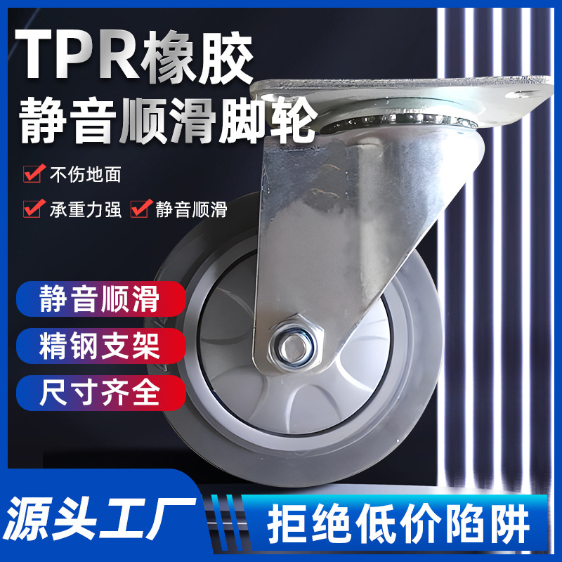 Caster TPR roda bisu karet elastis, 3 inci 4 inci 5 inci alat roda karet industri roda universal troli
