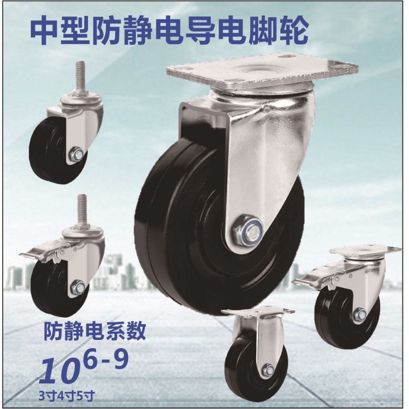 Kastor Anti Statis Sedang Roda Karet Hitam 3 Inci 4 Inci 5 Inci Roda Konduktif 10.6-9 Perempat Roda Anti Statis