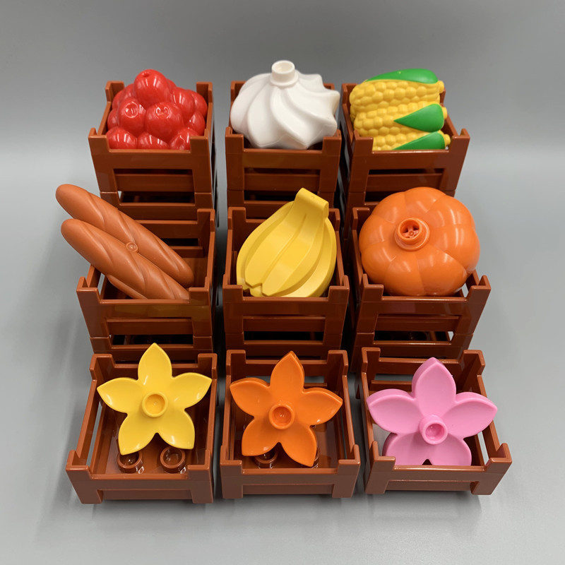 Blok bangunan partikel besar domestik grosir grosir bar buah supermarket pajangan berdiri buah sayuran roti jamur mainan anak-anak