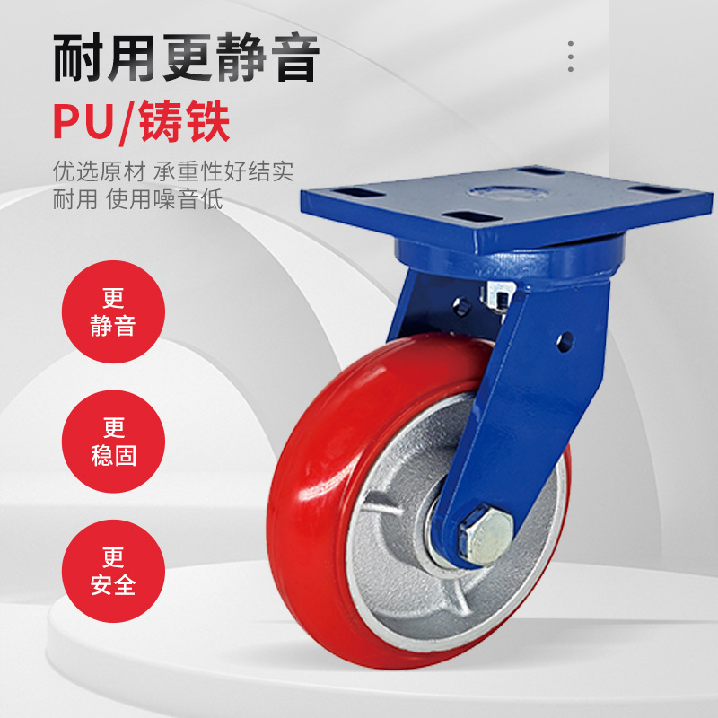 Roda Polyurethane PU 4-inci 6-inci 8-inci dengan inti besi, roda universal untuk gerobak bergerak, kastor tahan aus kelas industri