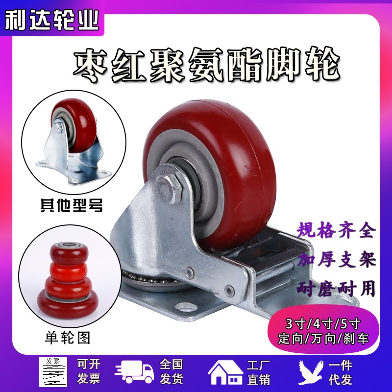 Baja tahan karat Medium jujube roda merah 2.5/3/4/5 inci 304 baja tahan karat roda universal awet tahan air