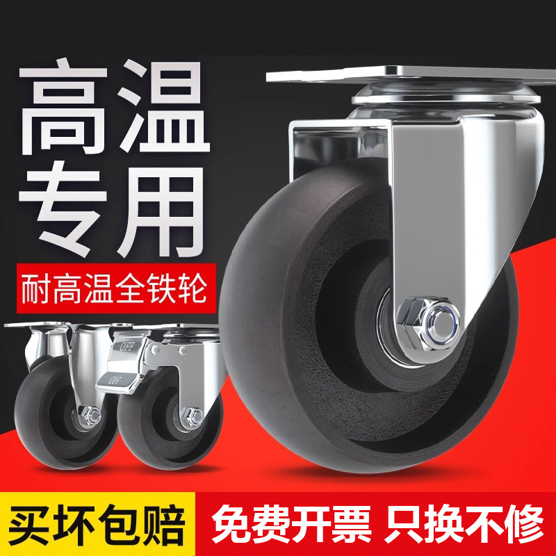 Roda Besi Cor Ukuran Sedang 345 Inci Roda Universal Tahan Suhu Rendah Oven Khusus Kastor Industri Besi Penuh Beban Padat