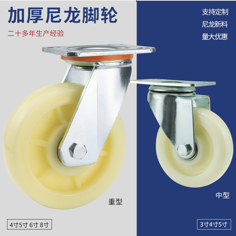 Roda nilon tugas berat putih sedang 4/5/6/8 inci kanopi tebal roda universal roda industri tangan dorong datar kastor skuter