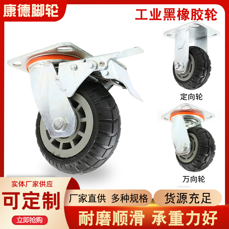45/6/8 Inci Roda Tahan Aus Karet Warna Hitam Roda Dorong Tangan Datar Roda Rak Roda Roda Kasur Universal Tugas Berat