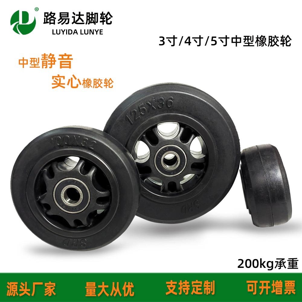 Kastor Padat Tugas Berat 8 Inci Roda Troli Karet Mute Roda Kursi Roda Roda Peralatan Hiburan