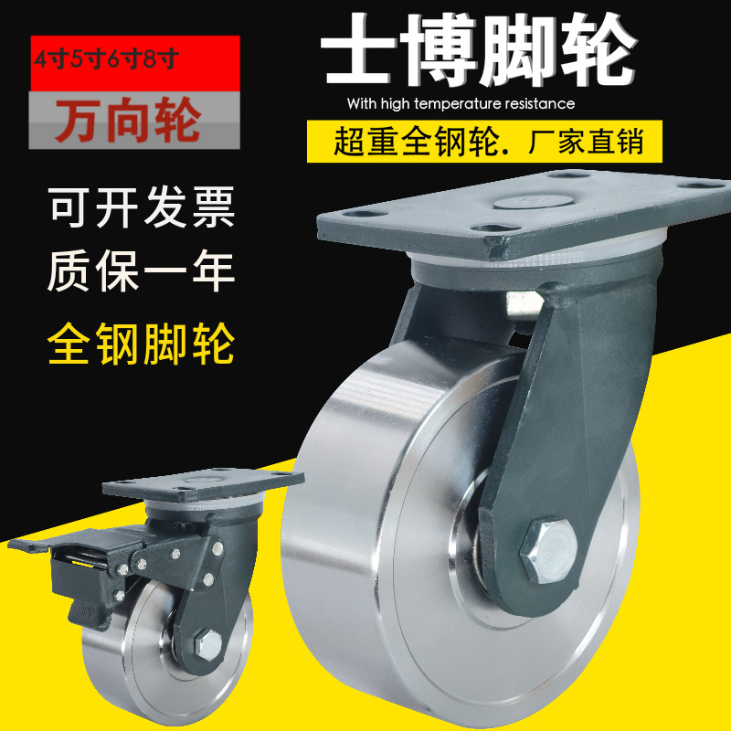 Shimo caster super tugas berat, kastor 4 inci 5 inci 6 inci 8 inci roda baja semua roda besi 3.5 t troli die casting roda