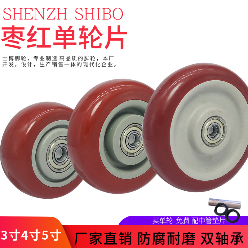 Penjualan langsung pabrik roda Pu merah keunguan 3-inci 4 inci RODA tunggal kaster medium roda tunggal rol skuter datar troli tahan aus