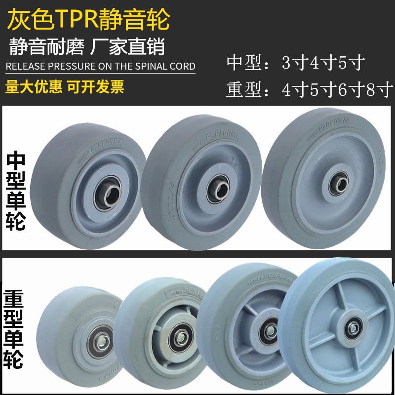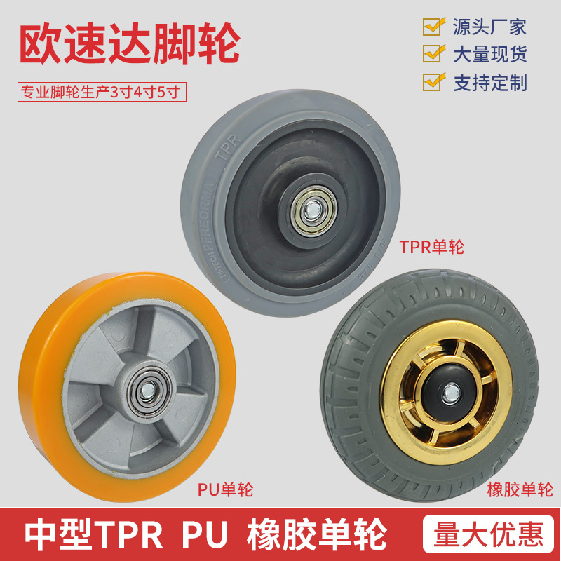 TPR roda tunggal 3 inci 4 inci 5 inci, roda aluminium inti ganda PU tahan aus, poros tunggal roda karet suar