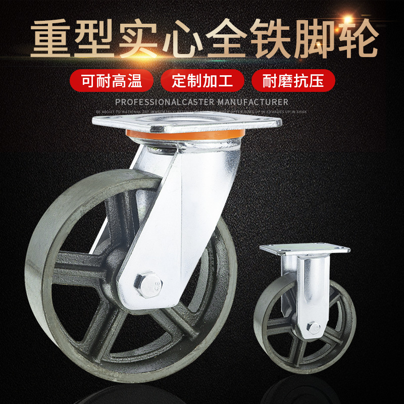 6-inch roda semua besi Industri tahan suhu tinggi 8-inch kastor besi cor roda universal troli oven roda besi super berat