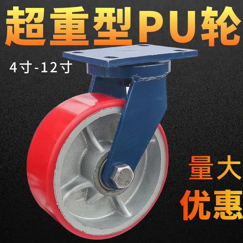 Roda universal kastor tugas berat Super 4 inci, 5 inci 6 inci 8 inci roda besi PU roda kastor industri beban 1 ton