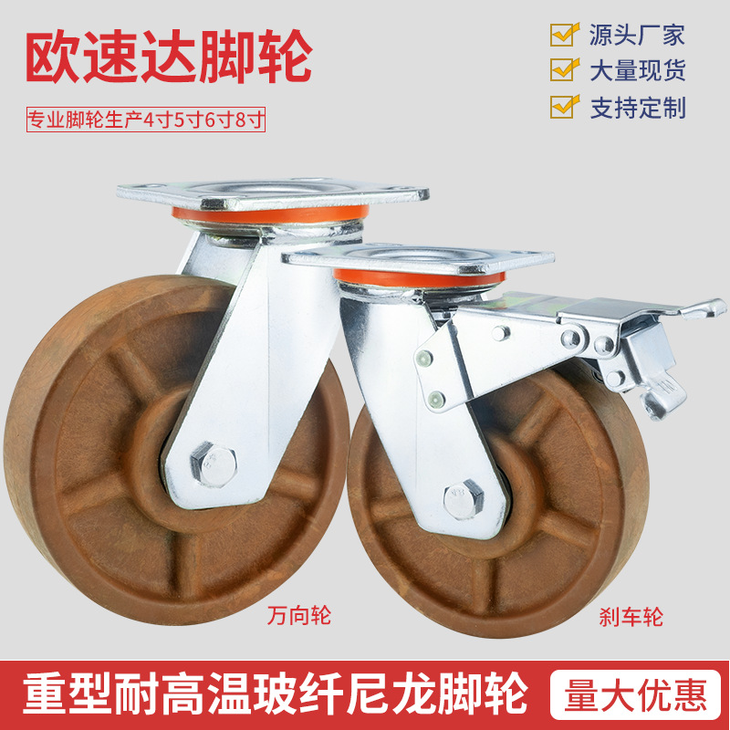 Kastor troli industri roda oven 300 ° tahan suhu tinggi roda universal nilon serat kaca 8 inci 6 inci 5 inci 4 inci tugas berat