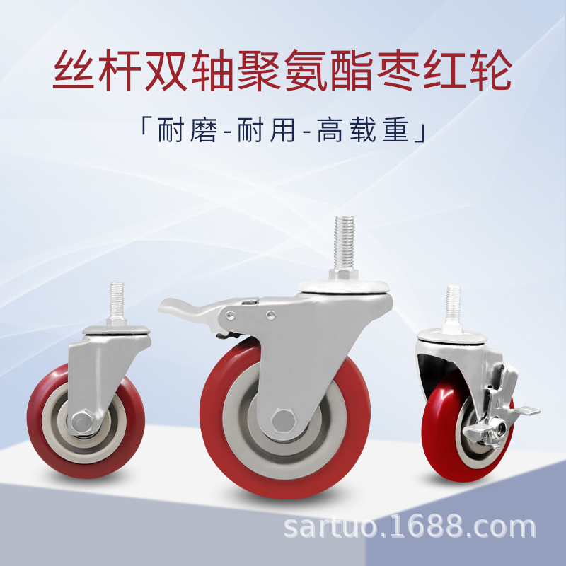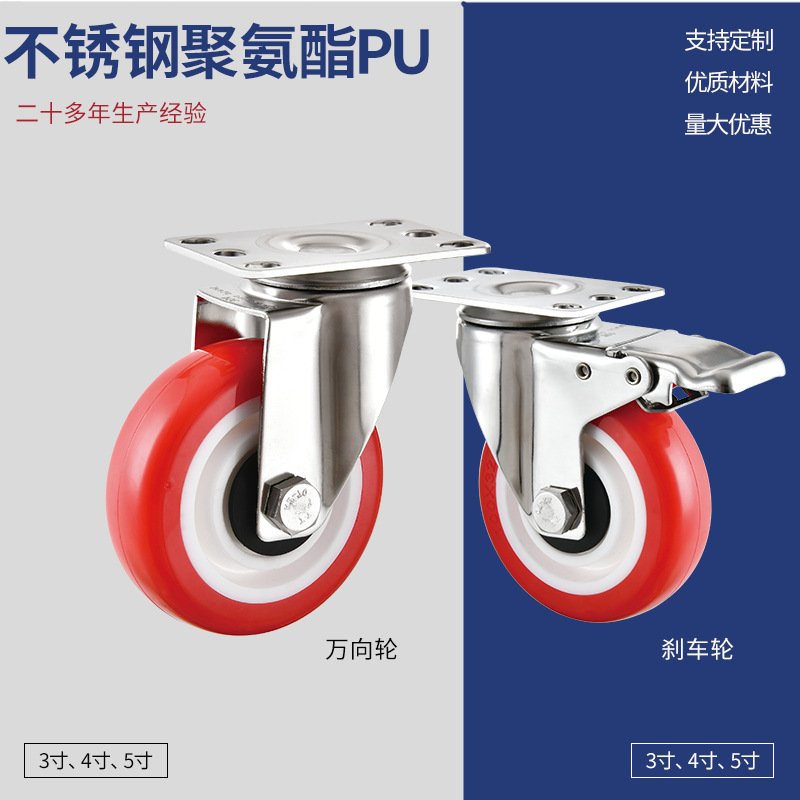 3/4/5 inci bantalan ganda sedang baja tahan karat merah poliuretan PU putih inti plastik roda troli universal medium
