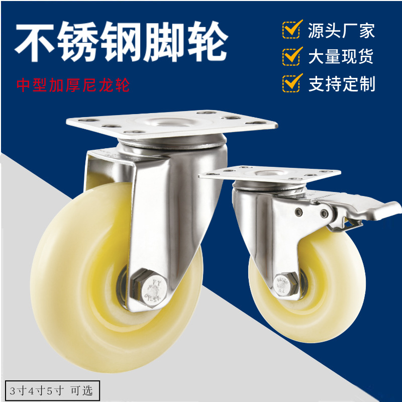 Kastor baja tahan karat Medium roda universal rak troli roda nilon 4 inci 5 inci 304 roda tahan karat