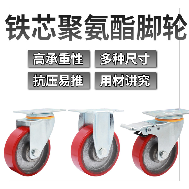 Kastor universal sunyi inti besi sedang dengan rem 345 inci tebal tahan aus roda troli troli