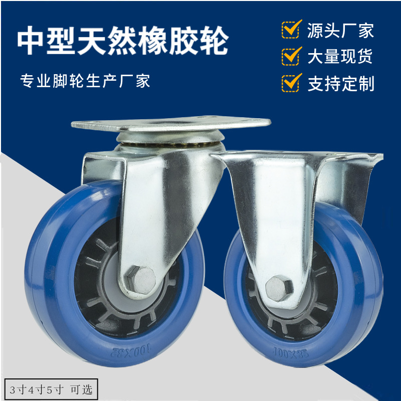 Roda bisu karet alami biru 3 inci 4 inci 5 inci roda troli caster universal rem xianghong