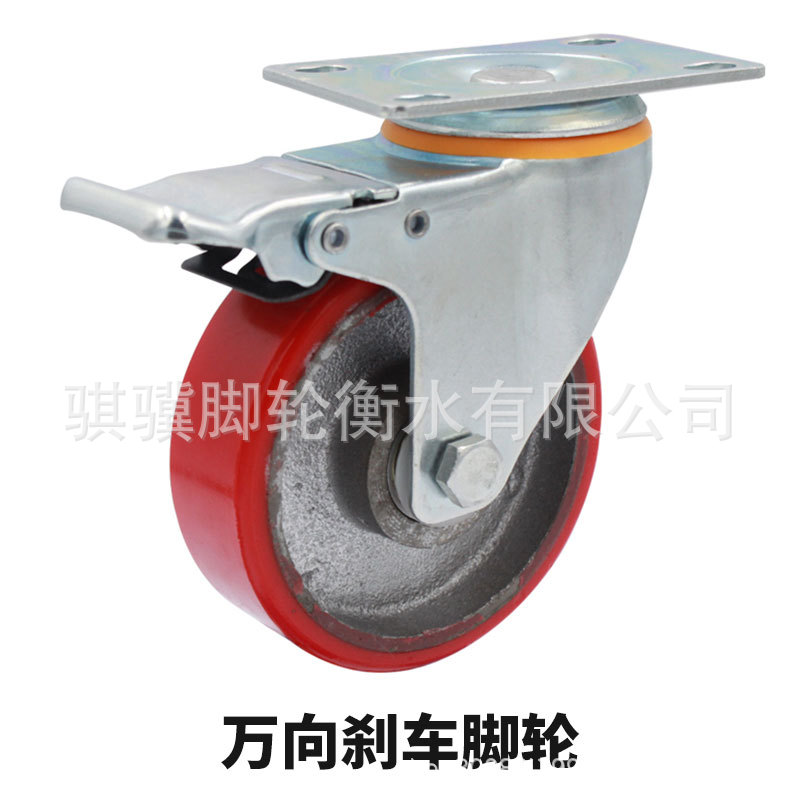 Perlengkapan rem roda universal poliuretan besi cor 4 inci, peralatan rem roda troli Roda 3 inci tahan aus mengurangi kebisingan pasokan langsung dari pabrik