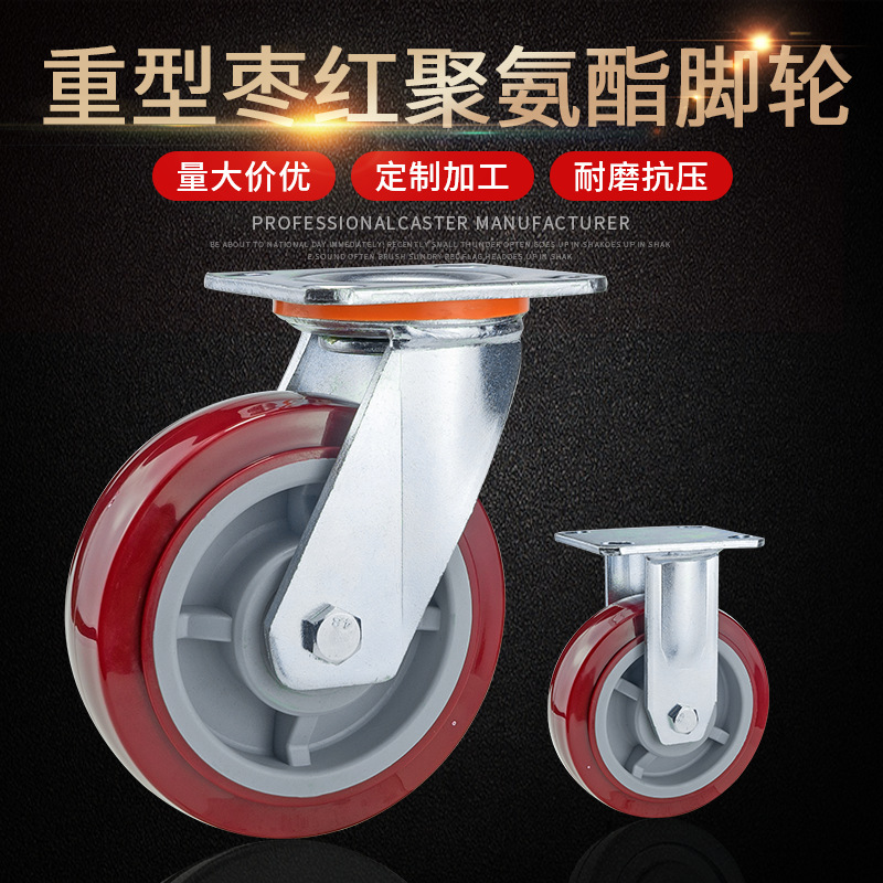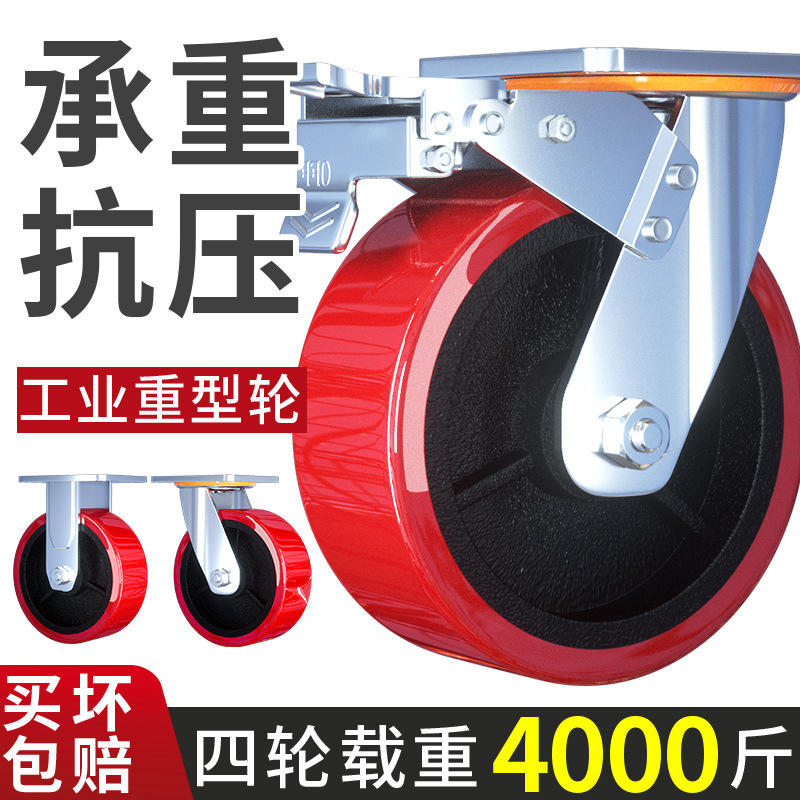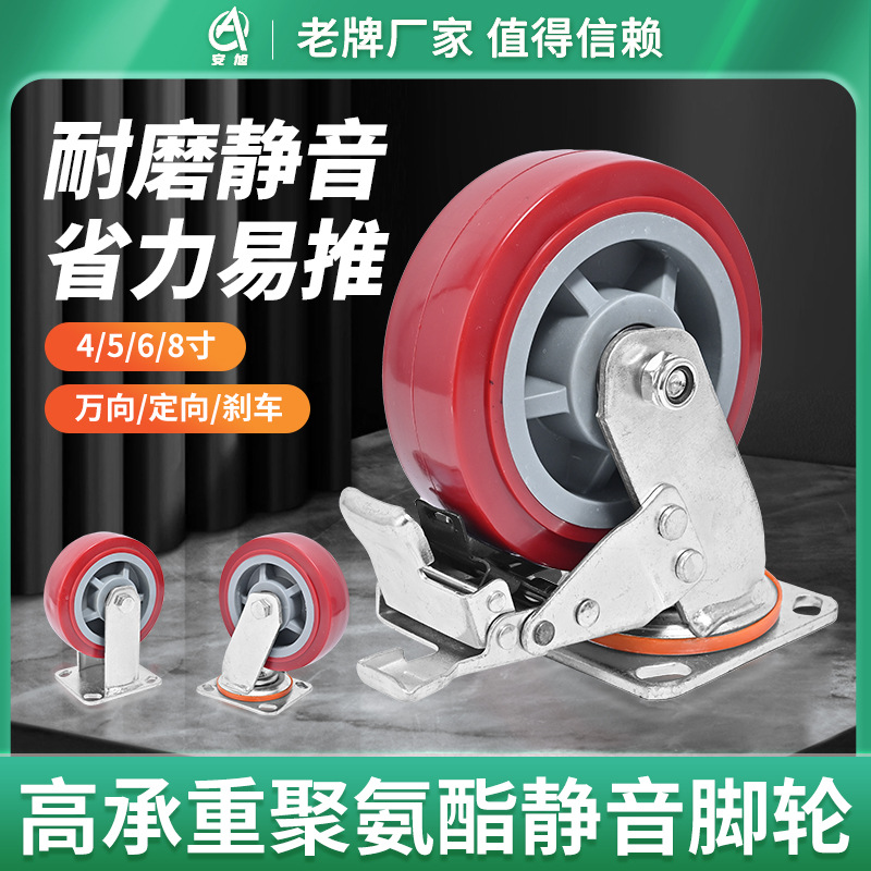 Kustom Tugas Berat Industri Poliuretan Roda Universal Keheningan Roda Kaki Kemudi Merah Tahan Gerus