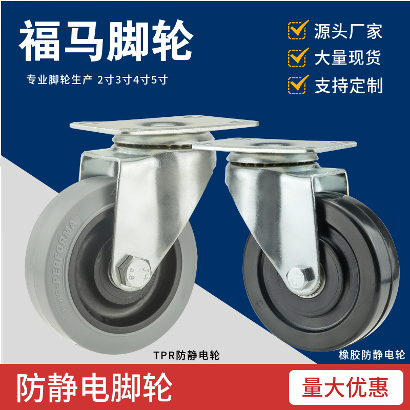 Abu-abu TPR anti-statis roda 3-inci 4-inci 5-inci hitam roda antistatis roda karet diam 6-9 daya