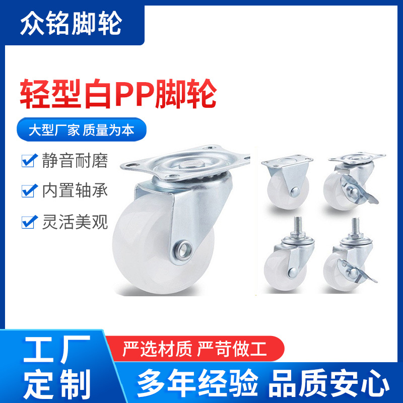 Pabrik cahaya lurus putih PP kastor putih nilon roda bisu rak penyimpanan universal roda roda universal roda kecil