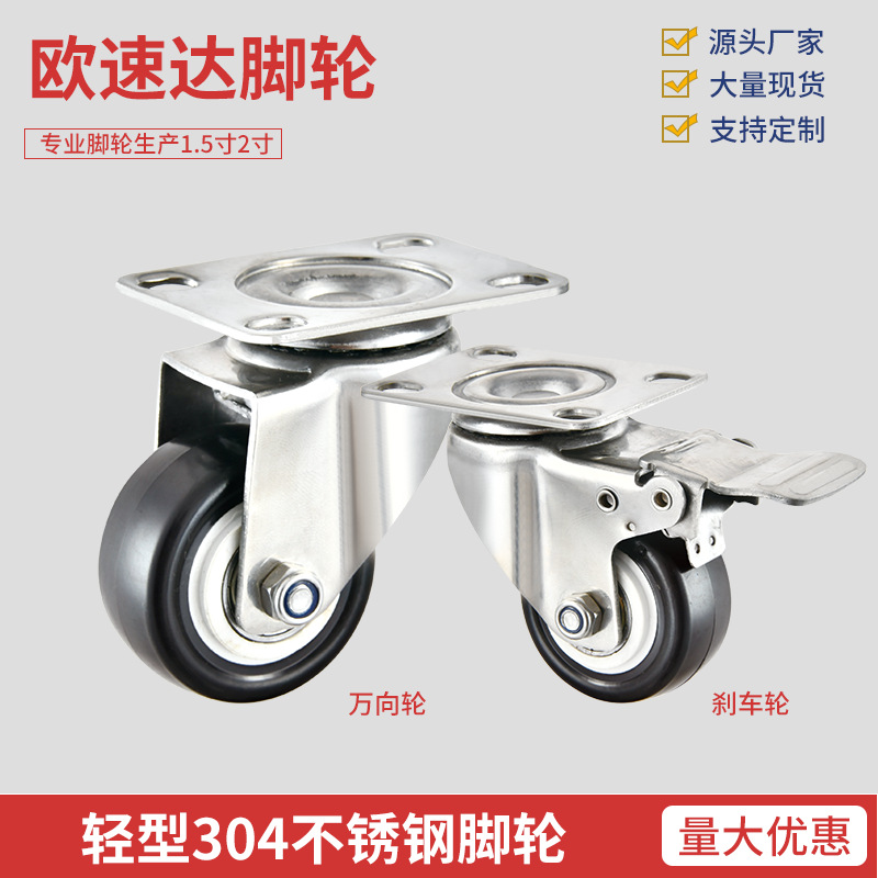 Kastor PU bantalan ganda ringan 1.5 inci 304 baja tahan karat dengan roda rem furnitur 2 inci