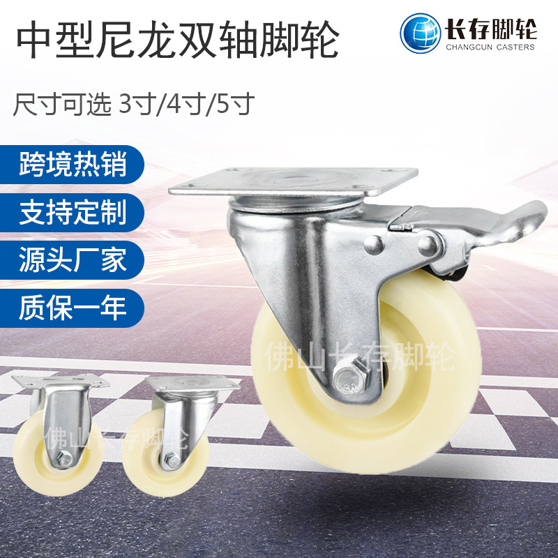 Kastor nilon sedang 4 inci, rol rem roda universal 3 inci, katrol troli kastor industri 5 inci roda bisu