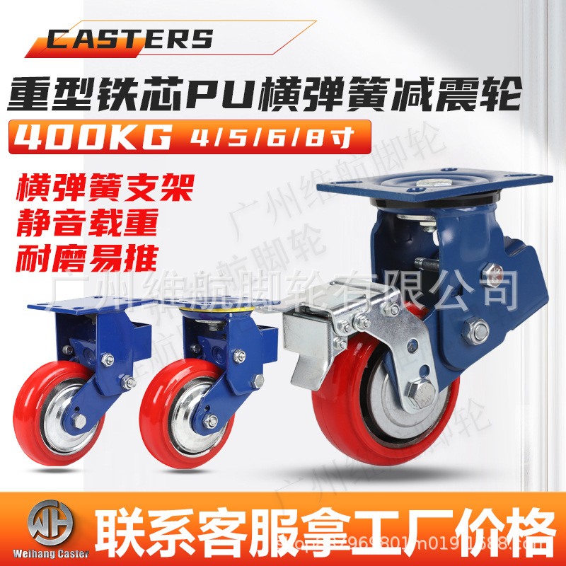 Kastor Tugas Berat Kastor Pengurang Guncangan Musim Semi 4 Inci 5 Inci 6 Inci 8 Inci Anti Guncangan Universal