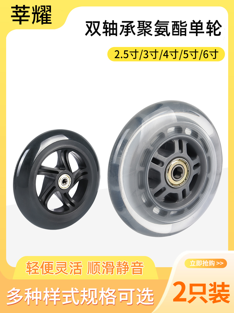 Grosir roda Pu 7 inci hub roda nilon tebal diameter 17cm 17cm roda depan kursi roda elastis tebal tahan aus