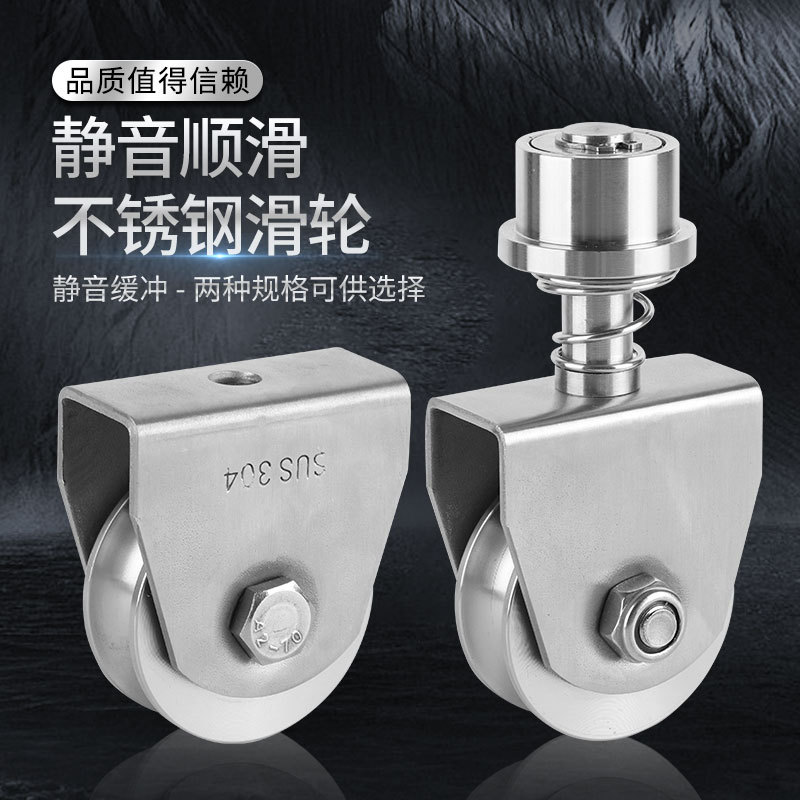 Roda berjalan pintu dan jendela universal Musim semi 304 baja tahan karat katrol perangkat keras pintu geser roda berjalan Pengarah jalur pintu