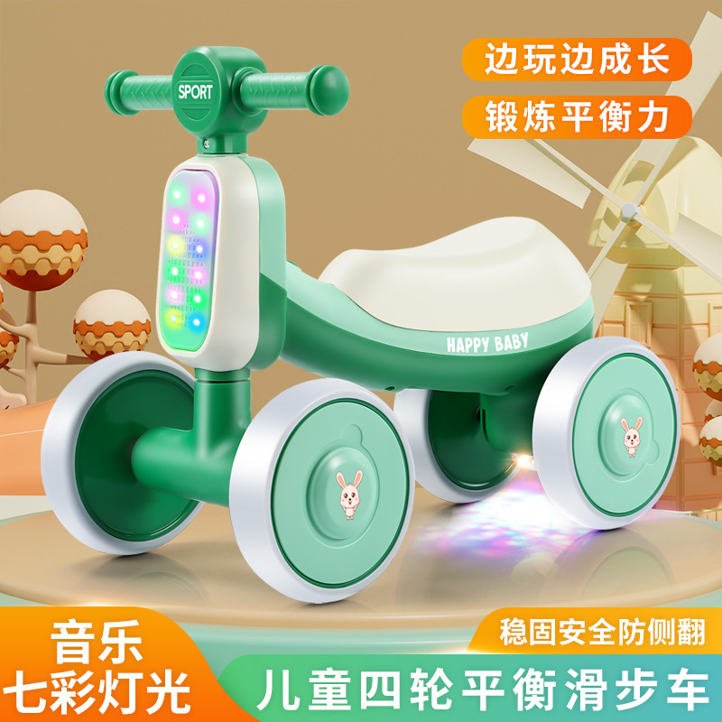 Skuter anak usia 1-3 tahun, sepeda keseimbangan anak, skuter bayi roda empat untuk anak laki-laki dan perempuan, model musik