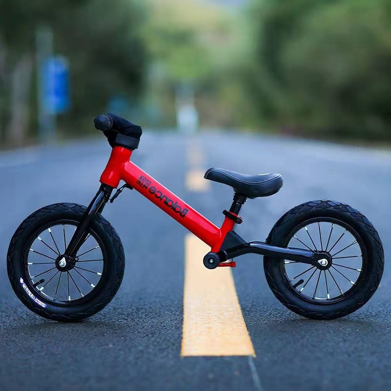 Skuter roda busa bebas pedal mobil keseimbangan anak-anak paduan aluminium skuter balap dua roda bayi perdagangan luar negeri 12 inci