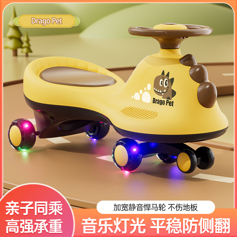 Hualei Beibei mobil ayunan anak-anak, skuter goyang anak laki-laki dan perempuan mainan bayi umur 1-3 tahun sunyi roda universal anti Guling