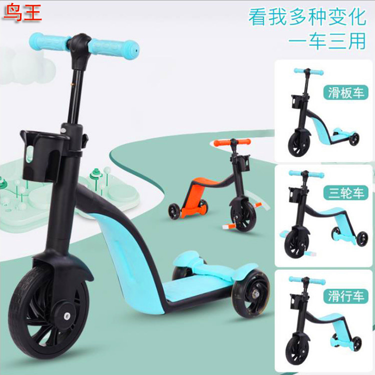 Skuter tiga dalam satu anak-anak, mobil keseimbangan anak roda tiga multifungsi, skuter tiga dalam satu