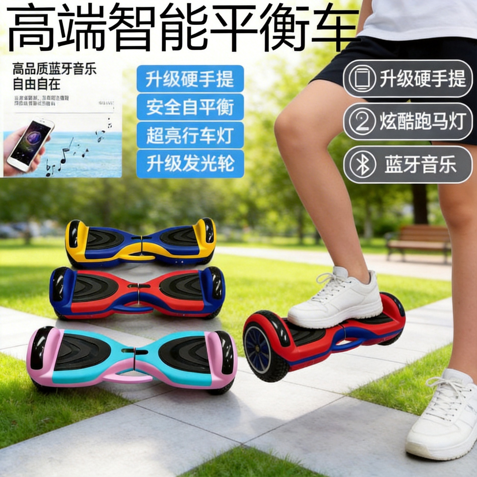 Mobil keseimbangan LED listrik cerdas, mobil keseimbangan dua roda, mobil berjalan untuk anak dan dewasa, otomatis, mengemudi, musik Bluetooth, mobil keseimbangan LED