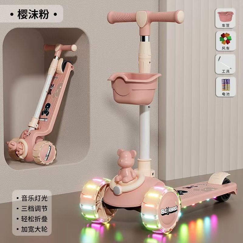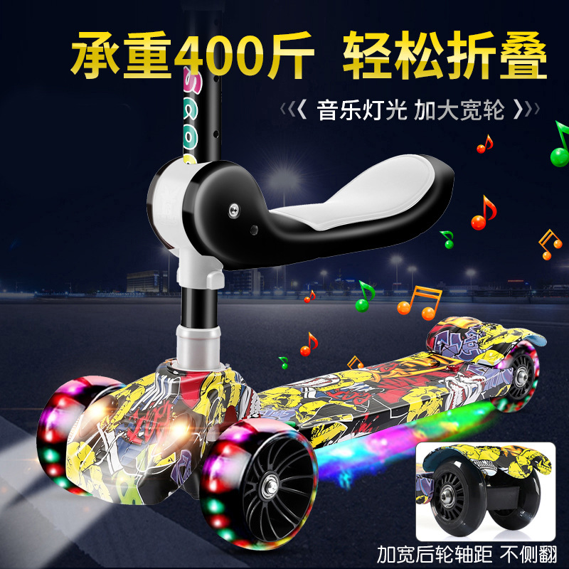 Skuter anak-anak tiga dalam satu roda flash skuter musik lipat pedal kaki tunggal katrol bayi