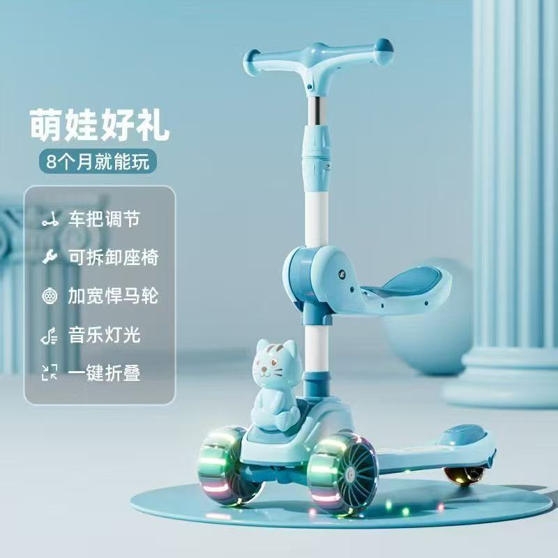 Lampu musik skuter anak-anak satu mobil multiguna dalam persediaan skuter bayi satu klik lipat skuter anak-anak