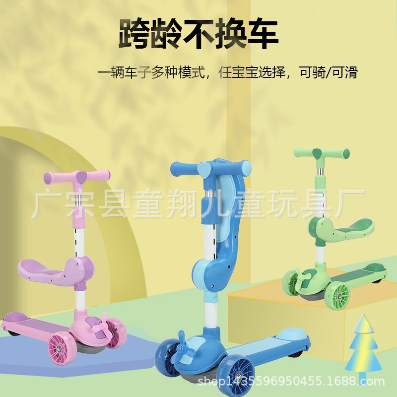 Katrol lipat anak-anak usia 2-6-11 tahun, skuter tiga dalam satu kaki tunggal roda