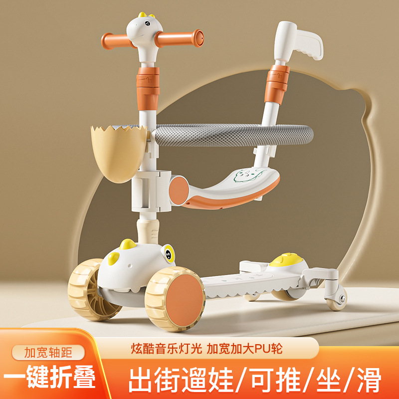 Sepeda seluncur skuter anak-anak dengan kursi tiga-dalam-satu 1-2-345-67 tahun dapat duduk, naik, dan meluncur