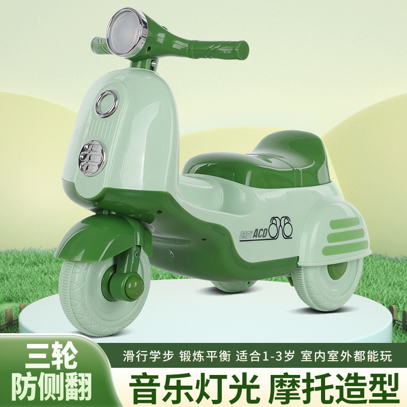 Skuter anti-flip anak 1-3 tahun, musik ringan bayi pria dan wanita, hadiah mobil hadiah anak-anak ekspor