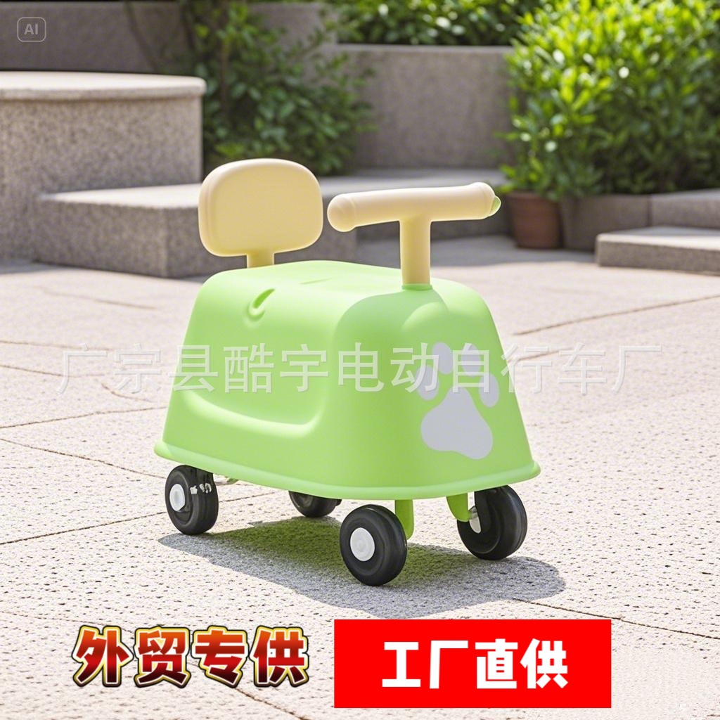 Pasokan langsung anak-anak baru empat roda skuter 1-3 tahun anak laki-laki dan perempuan keseimbangan berjalan bantuan mainan mobil dapat diganti