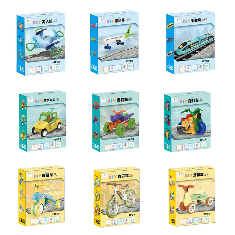 儿童拼装自行车摆件卡通组装单车玩具模型男孩宝宝益智滑行车礼物
