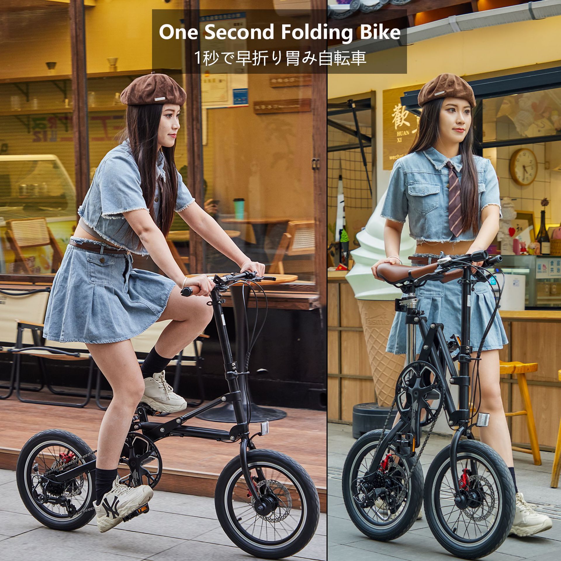 CMSBIKE sepeda lipat cepat satu detik 16-inci ultra-ringan portabel untuk pria dan wanita dewasa dengan kecepatan variabel dan rem cakram.
