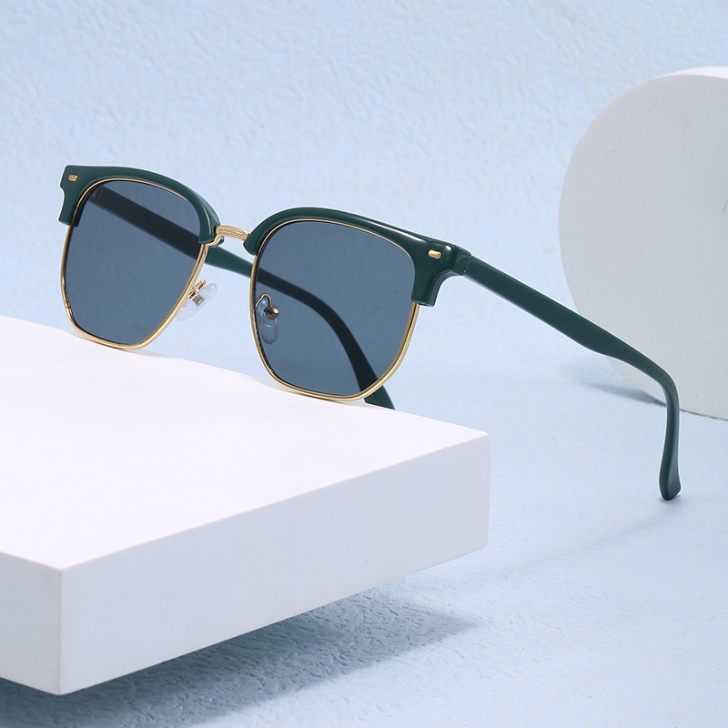 Kacamata hitam perdagangan luar negeri Pria, kacamata hitam retro paku setengah bingkai krem 3016 pelindung matahari berkendara
