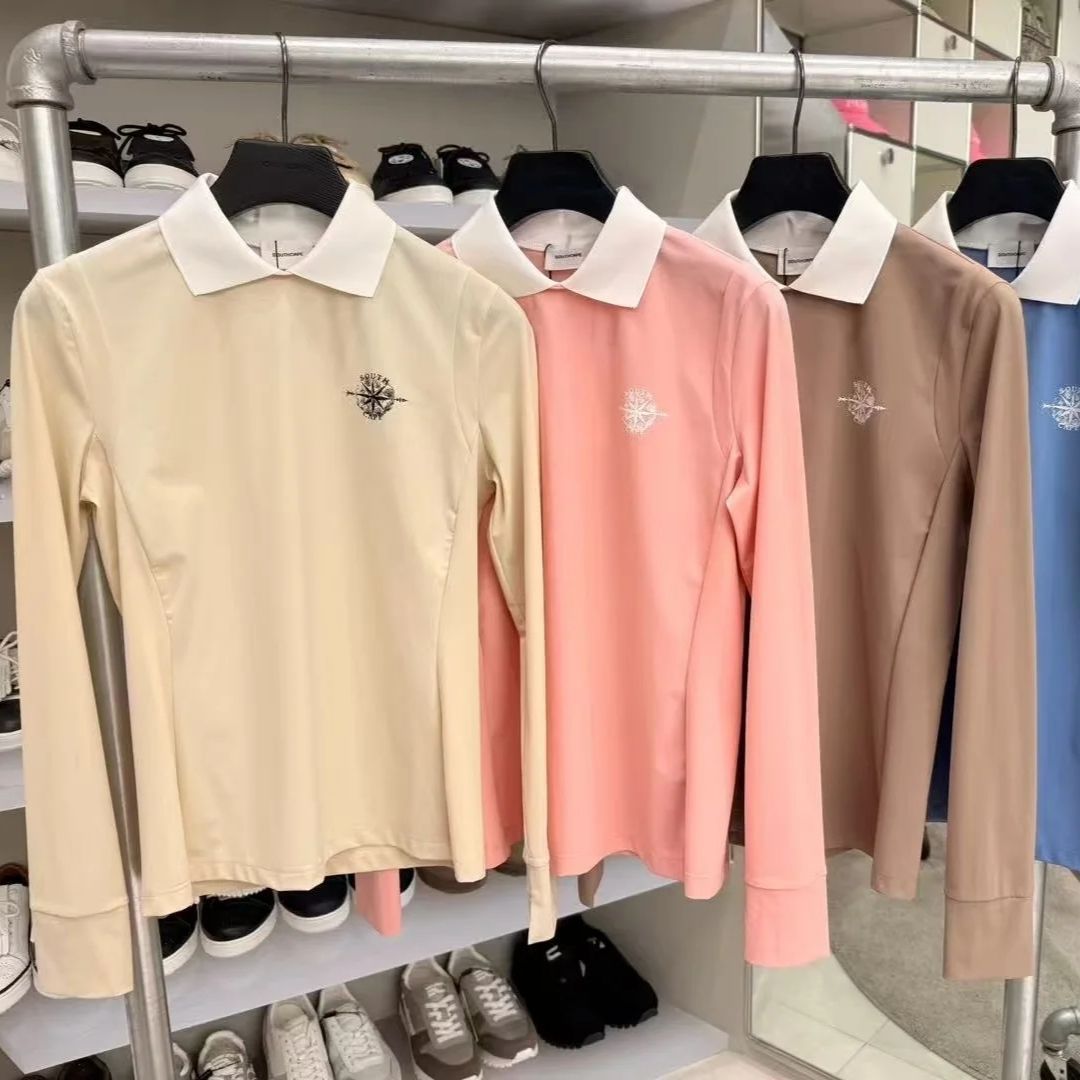 25春夏新款高尔夫女装网眼透气长袖T恤户外运动时尚翻领百搭上衣
