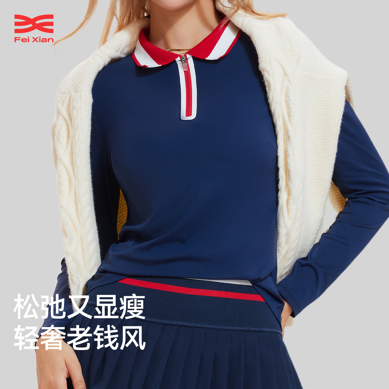 新款高尔夫女士秋冬长袖T恤LOGO运动面料衣服翻领羽毛球瑜伽服外