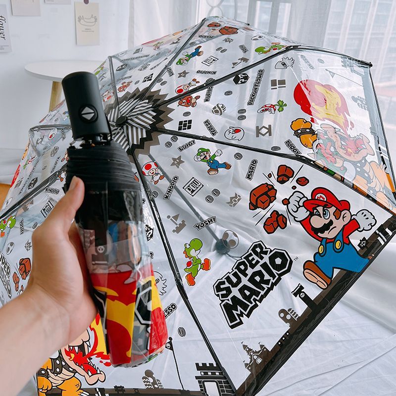透明男女玛丽雨伞三折伞自动马里奥直柄伞马力欧折叠儿童成人动漫
