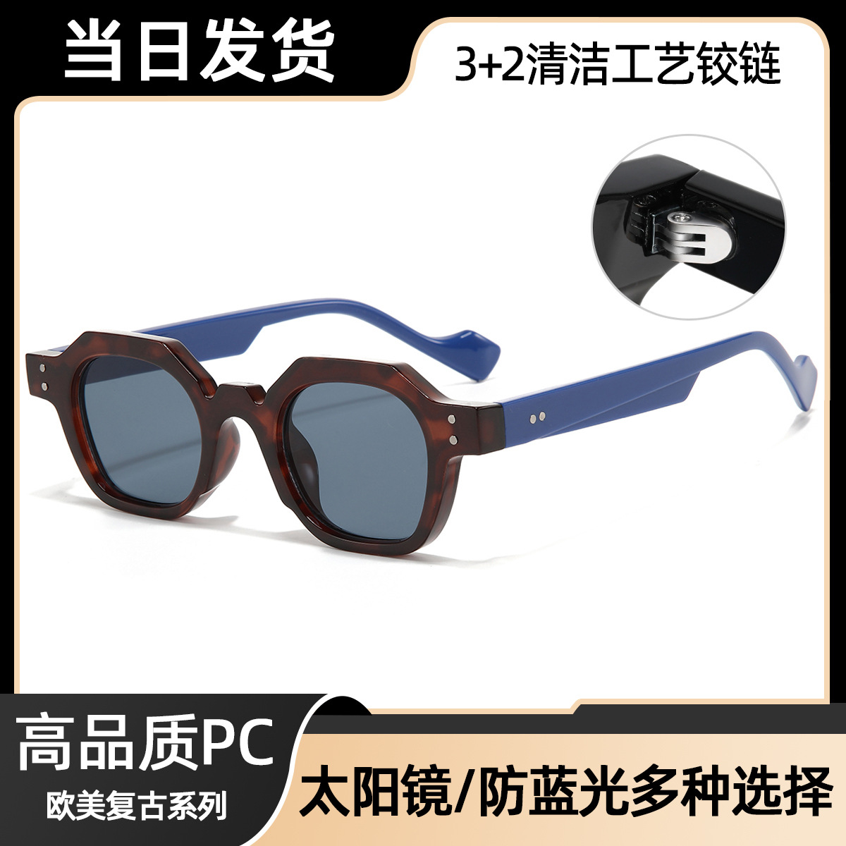 Kacamata hitam poligon Eropa dan Amerika retro mode untuk wanita kacamata hitam gaya jalanan trendi dekorasi keling bingkai kecil Pria