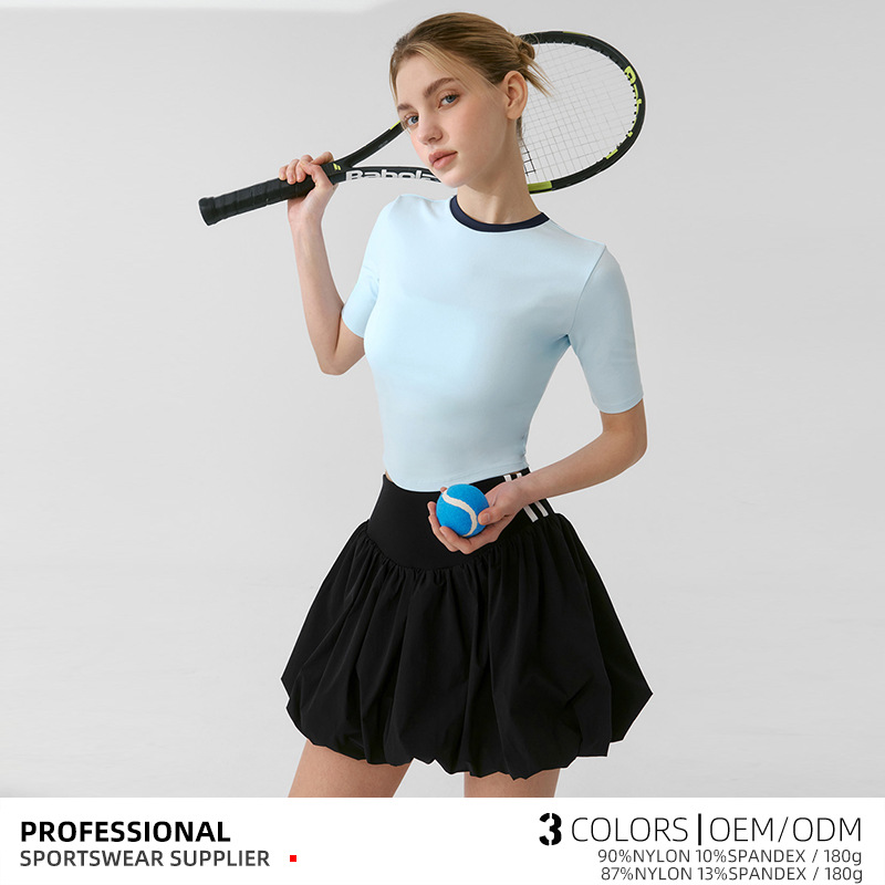 Pakaian Tenis Model Baru Musim Panas Pakaian Olahraga Kebugaran Lengan Pendek Bulu Tangkis Golf Rok Tunas Bunga Anti Tercahaya Wanita